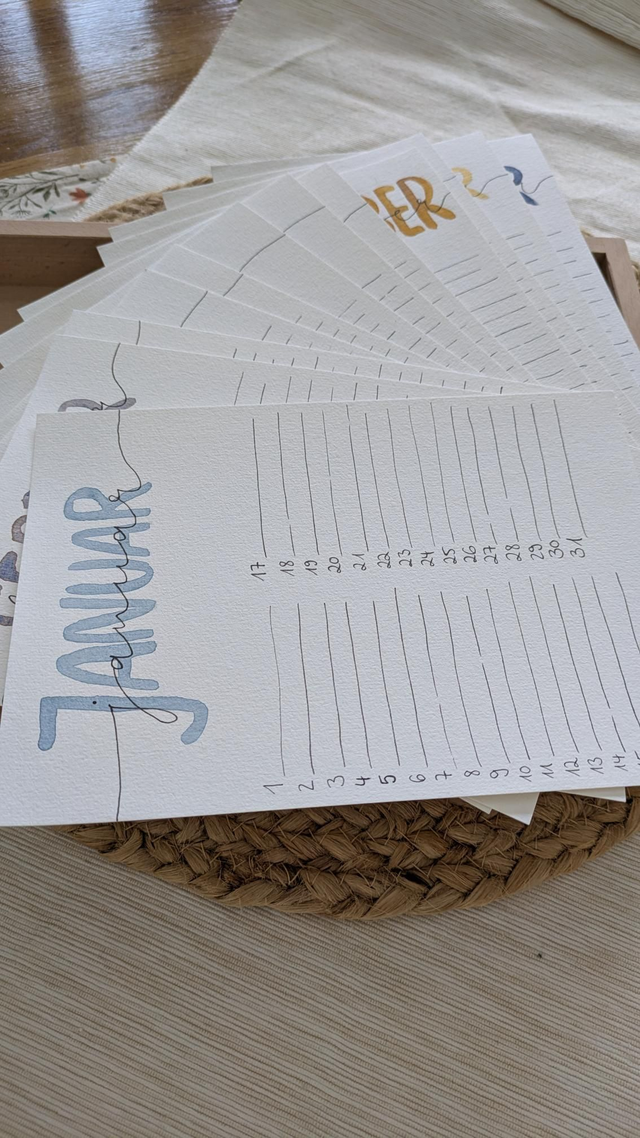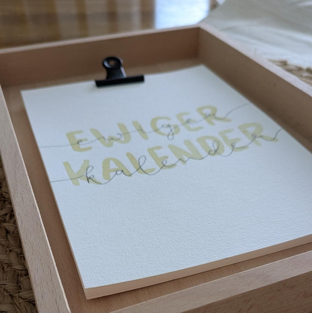 Jahr für Jahr die wichtigsten Tage im Blick: Der handgemalte ewige Kalender auf feinem 300g Aquarellpapier vereint Stil und Funktion. Im handlichen A5-Format, mit Klammer befestigt und in einem eleganten Holzrahmen – ein echter Hingucker für dein Zuhause oder als liebevolles Geschenk.